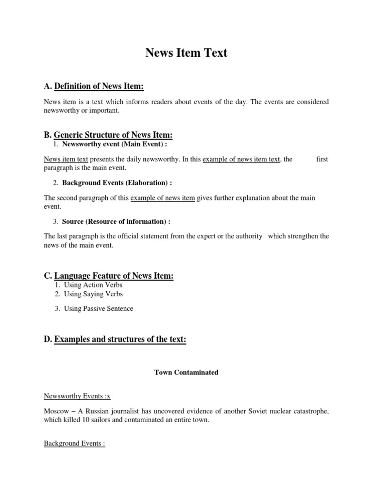 News Item Text Penjelasan Contoh Terjemah Dan Generic Structure - Watch selected news and current affairs items from across the australian broadcasting corporation.
